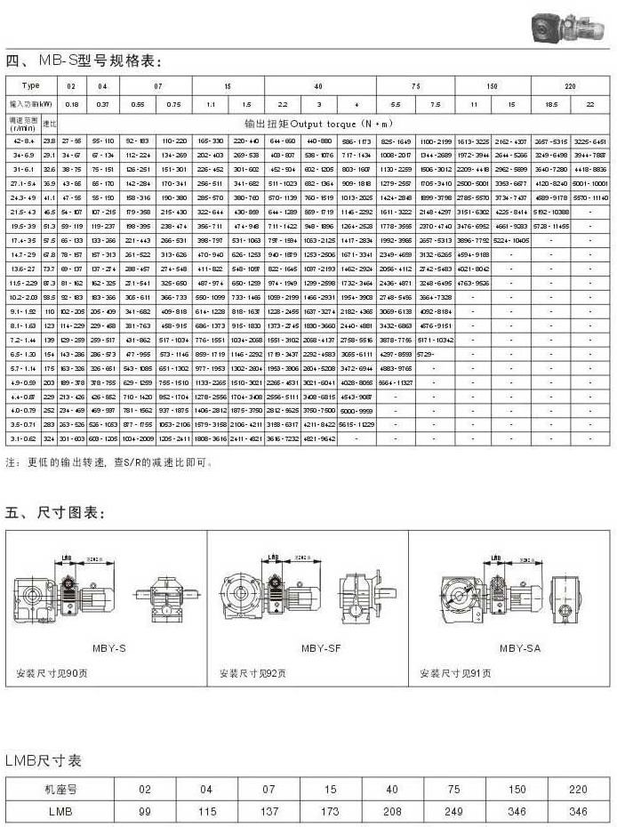 MB-S型號規(guī)格表尺寸圖表LMB尺寸表