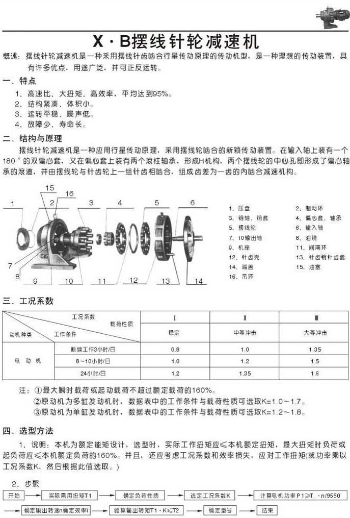 X . B擺線針輪減速機特點結構與原理工況系數(shù)選型方法
