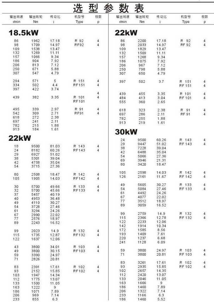 選型參數表18.5kW(續(xù)),22kW,30kW