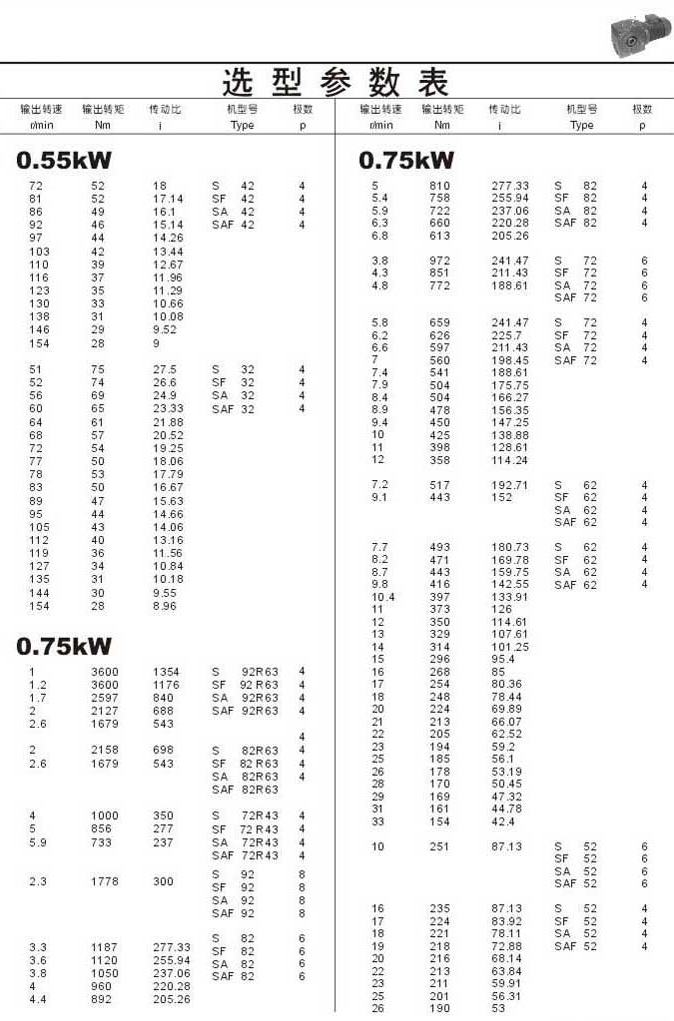 選型參數(shù)表0.55kW(續(xù))和0.75kW